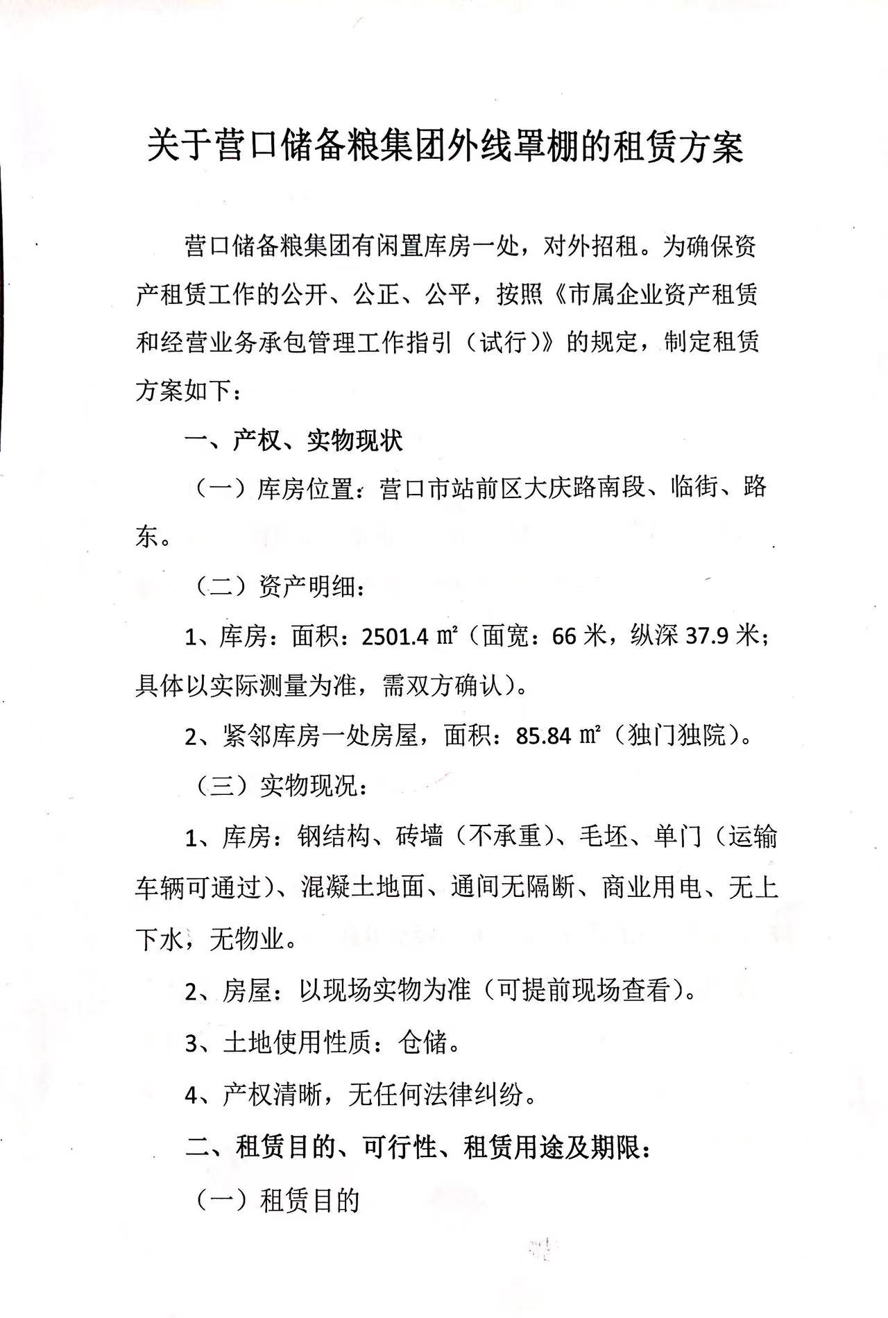關于營口儲備糧集團外線罩棚的租賃方案